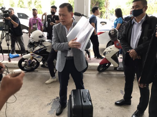 “สันธนะ” หอบหลักฐานใส่กระเป๋าใบใหญ่ พบกองปราบให้ปากคำฐานะพยานตามหมายเรียกคดีหลงจู๊จ้างวานฆ่าวินจยย.