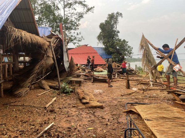 พายุถล่มซุ้มอาหารและบ้านเรือนประชาชนชาวมุกดาหารเสียหาย