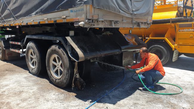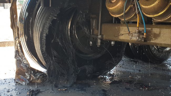 เมื่อไปถึงที่เกิดเหตุตรวจสอบพบเป็นรถพ่วง 22 ล้อ ยี่ห้อ Isuzu FXZ 360 สีขาวหมายเลขทะเบียนส่วนหัว 70-1561 ระนอง ตัวพ่วงหมายเลข 70-1562 ระนอง จอดอยู่บริเวณริมถนน โดยมีเจ้าหน้าที่หมวดทางหลวงประจวบ กำลังใช้สายยางน้ำฉีดพ่นดับไฟที่ลุกไหม้อยู่บริเวณยางล้อท้ายรถทั้งสองข้างที่ได้รับความเสียหาย รวมจำนวน 4 ล้อ