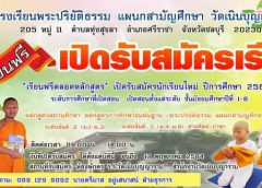 วัดเนินบุญญา รามเปิดรับสมัครเรียนฟรี ในโครงการโรงเรียนพระปริยัติธรรมแผนกสามัญศึกษาระดับนักเรียนชั้นประถมศึกษาและหลักสูตรมัธยมศึกษาตอนต้นและตอนปลาย