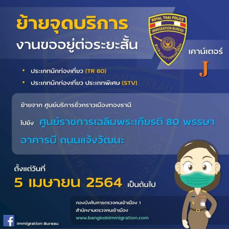 ย้ายจุดบริการขออยู่ต่อกลับมาที่ศูนย์ราชการฯ แจ้งวัฒนะ อาคารบี แล้วตั้งแต่วันที่ 5 เม.ย.64 เป็นต้นไป