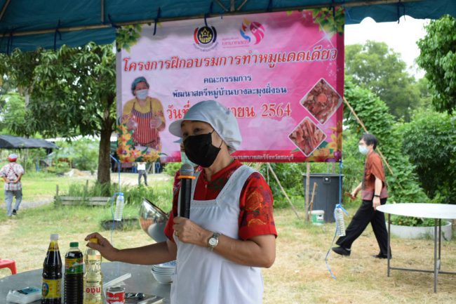 ซึ่งได้รับเกียรติจาก คุณกุลวดี รุ่งธนรักษ์ พัฒนาการอำเภอ กล่าวความเป็นมาโครงการ และมีกิจกรรมภายในโครงการ ได้แก่ การฝึกอบรมทำหมูแดดเดียว โดยมี คุณประภาวดี สิทธิเวช ครูฝึกอาชีพแผนกโภชนาการ มาให้ความรู้ด้านวิธีการทำหมูแดดแดดเดียวให้มีรสชาติอร่อย และได้มาตราฐาน  ทั้งนี้ยังมีการอบรมในด้านการสร้างอาชีพ ขายสินค้าออนไลน์ โดยมี คุณวุฒิชัย ศรีประเสริฐกุล มาเป็นวิทยากรตามโครงการดังกล่าว