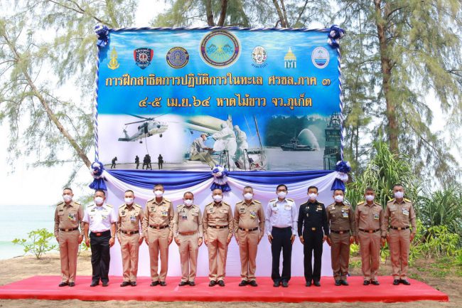 นอกจากนี้ ยังมีการฝึกสาธิตการปฏิบัติงานของ ศรชล. โดย ศรชล.ภาค 3 ร่วมกับ ศรชล.จังหวัดภูเก็ต และหน่วยงานต่างๆ ในพื้นที่จังหวัดภูเก็ต บูรณาการการปฏิบัติกับหน่วยงานหลักของ ศรชล. โดยกำหนดสถานการณ์การฝึก 2 หัวข้อ การฝึก ได้แก่ การฝึกสาธิตการปฏิบัติการตรวจค้นเรือต้องสงสัยในสถานการณ์ Covid -19 การฝึกสาธิตในการปฏิบัติการช่วยเหลือผู้ประสบภัยในทะเล เพื่อให้เป็นการทำงานร่วมกันของหน่วยต่าง ๆ ที่มีประสิทธิภาพ และเป็นรูปธรรม
