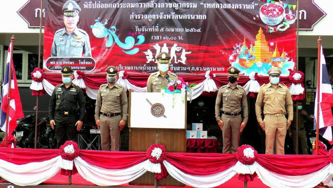 ที่บริเวณลานจอดรถหน้ากองกำกับการสืบสวน ตำรวจภูธรจังหวัดนครนายก พลตำรวจตรีอิทธิพร โพธิ์ทอง ผู้บังคับการตำรวจภูธรจังหวัดนครนายก ได้เป็นประธานในพิธีปล่อยแถวระดมกวาดล้างอาชญากรรมช่วงหยุดยาววันสงกรานต์ โดยมีการบูรณาการความร่วมมือผู้กำกับการตำรวจภูธรทุกสถานี กำลังเจ้าหน้าที่ตำรวจ ทหาร ฝ่ายปกครองและอาสาสมัคร ออกปฏิบัติการทั้งรถยนต์ รถจักรยานยนต์ ลงพื้นที่กลุ่มเป้าหมาย เนื่องจากช่วงสงกรานต์จะมีประชาชนเดินทางกลับภูมิลำเนาจำนวนมาก อาจทำให้เกิดปัญหาการจราจร และความไม่ปลอดภัยในชีวิตและทรัพย์สินของประชาชน อีกทั้งยังเป็นการป้องกันปราบปรามอาชญากรรม ก่อความเดือดร้อนรำคาญหรืออาจมีกลุ่มมิจฉาชีพแฝงตัวเข้าไปก่ออาชญากรรมในพื้นที่ต่างๆในพื้นที่ที่มีการรดน้ำดำหัว งานบุญ การเล่นน้ำสงกรานต์ เพื่อให้การอำนวยความสะดวกการจราจรและการรักษาความปลอดภัยในชีวิตและทรัพย์สินของประชาชน ในช่วงวันหยุดยาวเทศกาลวันสงกรานต์ 2564 เป็นไปด้วยความเรียบร้อย มีประสิทธิภาพ ตำรวจภูธรจังหวัดนครนายก จึงปล่อยแถวระดมกวาดล้างอาชญากรรมช่วงวันหยุดยาวเทศกาลสงกรานต์ดังกล่าวขึ้น โดยจะเพิ่มความเข้มการตั้งจุดตรวจ จุดสกัดทั้งพื้นที่ชั้นนอกและชั้นใน หากมีผู้กระทำความผิดทุกประเภท จะจับกุมและดำเนินคดีตามกฎหมายทันที