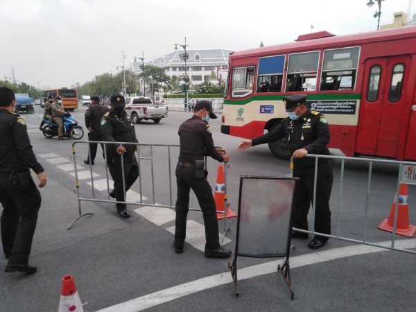 วันที่ 6 เม.ย.64) เวลา 09.45 น. : นายสุรเดช อำนวยสาร ผู้อำนวยการเขตพระนคร มอบหมายให้ นายสัมฤทธิ์ สุมาลี ผู้ช่วยผู้อำนวยการเขตพระนคร สั่งการให้ นายคณิต ชุมช่วย หัวหน้างานตรวจและบังคับการ (รักษาการในตำแหน่งหัวหน้าฝ่ายเทศกิจเขตพระนคร) นำกำลัง จนท.เทศกิจ ชุด 254 ร่วมกับ จนท.ตำรวจ สน.พระราชวัง ลงพื้นที่ จัดตั้งวางแผงเหล็กกั้น ตลอดแนวถนน ในเส้นทางเสด็จพระราชดำเนินพระบรมมหาราชวัง วัดพระแก้ว บริเวณสามแยกไฟแดง ฝั่งตรงข้ามศาลหลักเมือง เขตพระนคร กรุงเทพฯ