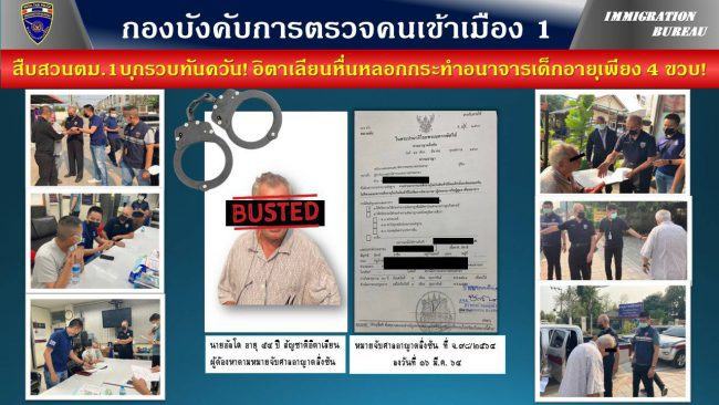 สืบสวน ตม.1 รวบอิตาเลียนหื่น ลวงเพื่อนลูก 4 ขวบ หลอกกระทำอนาจาร