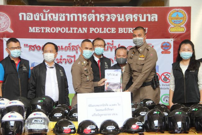 พล.ต.ต.จิรสันต์ฯ รอง ผบช.น. ร่วมรับมอบหมวกนิรภัยและป้ายไวนีล โครงการ “สงกรานต์ 64 สวมหมวกเที่ยวปลอดภัย”