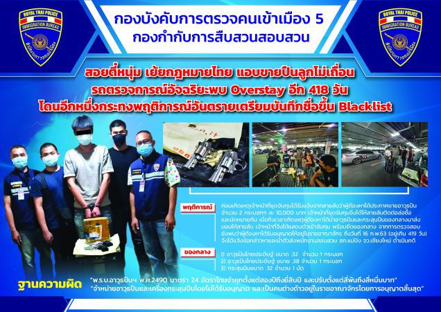 สืบสวน ตม.5 จับกุมคนต่างด้าวสัญชาติจีน จำหน่ายอาวุธปืนและเครื่องกระสุนปืนโดยไม่ได้รับอนุญาตและเป็นคนต่างด้าวอยู่ในราชอาณาจักรโดยการอนุญาตสิ้นสุด