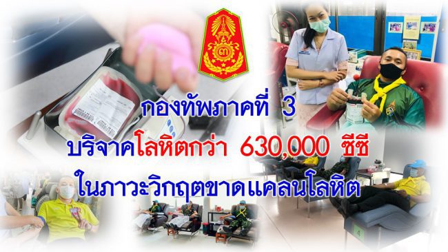 1. กองทัพภาคที่ 3 บริจาคโลหิตกว่า 630,000 ซีซี ในภาวะวิกฤตขาดแคลนโลหิต