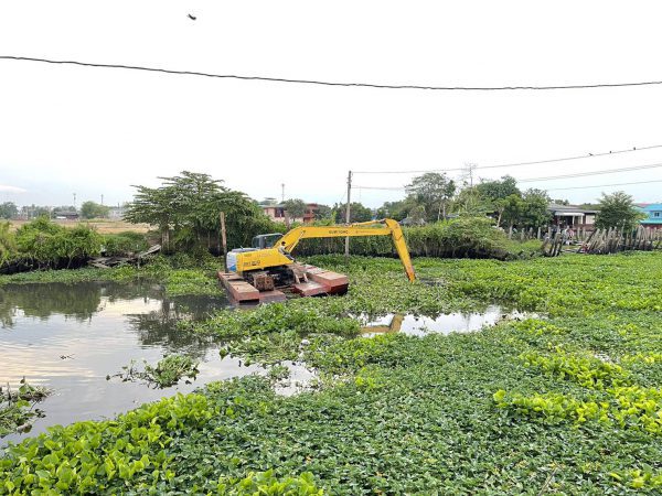 ชป.ลุยเก็บผักตบชวากีดขวางทางน้ำในคลองบางบัวทอง นนทบุรี รับน้ำฝน คาดแล้วเสร็จต้นเดือน พ.ค. 64 นี้