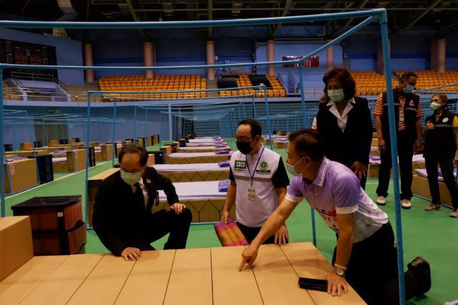 สำหรับโรงพยาบาลสนามแห่งนี้ได้รับการสนับสนุนเตียงกระดาษจากบริษัทเอสพีจี แพคเกจจิ้ง จำกัด (มหาชน) 90 เตียง จึงนำที่นอน 200 ผืน ผ้าห่ม 200 ผืน มุ้ง 200 หลัง เจลแอลกอฮอล์ 400 ขวด และหน้ากากอนามัย 400 อันมามอบให้เพิ่มเพื่อให้โรงพยาบาลสนามแห่งที่ 2 ของจังหวัดนครราชสีมาพร้อม รองรับผู้ป่วยติดเชื้อไวรัสโควิด – 19 ที่อาจจะเพิ่มมากขึ้น หากจังหวัดใดต้องการการสนับสนุนดังกล่าวให้เหล่ากาชาดจังหวัดแจ้งมายังสำนักงานบริหารกิจการเหล่ากาชาดหรือผ่านแอปพลิเคชั่น “พ้นภัย”