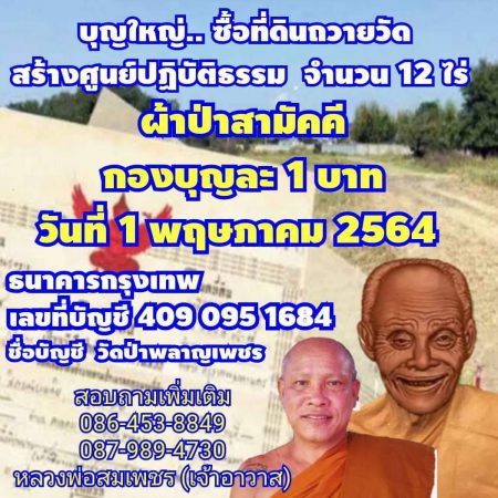 เมื่อวันที่ 2 พฤศภาคม 2564 ที่วัดป่าพลาญเพชร ต.ไพรพัฒนา อ.ภูสิงห์ จ.ศรีสะเกษ พระครูวัชรชยาภินันท์ หรือหลวงพ่อเพชร เจ้าอาวาสวัดป่าพลาญเพชร (ธ) อ.ภูสิงห์ จ.ศรีสะเกษ เปิดเผยว่า ได้นำคณะสงฆ์และศิษยานุศิษย์จำนวนหนึ่ง ประกอบพิธีทอดผ้าป่าสามัคคีแบบออนไลน์ กองละ 1 บาท เพื่อสมทบทุนซื้อที่ดินถวายวัด โดยมีญาติโยมพุทศาสนิกชนและศิษยานุศิษย์จากทั่วสารทิศร่วมกันทำบุญบริจาคเงินเข้าบัญชีวัด ซึ่งเป็นการทำบุญแบบออนไลน์ ในช่วงสถานการณ์การแพร่ระบาดของเชื้อโควิด-19 และเพื่อเป็นการปฏิบัติตามมาตรการของจังหวัดและสาธารณสุข โดยพิธีทอดผ้าป่าในครั้งนี้ ได้ยอดปัจจัยเป็นเงิน 496,892 บาท และยังขาดปัจจัยอีกเป็นจำนวนมาก จึงขอบอกบุญไปยังญาติโยมพุทธศาสนิกชนผู้ใจบุญร่วมเป็นเจ้าภาพทอดผ้าป่าสามัคคีเพื่อสมทบทุนซื้อที่ดินถวายวัดแบบออนไลน์ กองละ 1 บาท เพื่อใช้เป็นสถานที่ปฏิบัติธรรมและจัดกิจกรรมทางพุทธศาสนา หรือบริจาคตามกำลังศรัทธา โดยการทำบุญโอนเงินเข้าบัญชีธนาคารกรุงเทพ สาขาขุขันธ์ ชื่อบัญชี วัดป่าพลาญเพชร เลขที่บัญชี 409-0-95168-4 โดยญาติโยมที่โอนเงินร่วมทำบุญบริจาคตั้งแต่ 500 บาทขึ้นไป ทางวัดจะจัดส่งเหรียญวัตถุมงคล ไปให้ตามที่อยู่ เมื่อโอนแล้วส่งสลิปการโอนและที่อยู่พร้อมเบอร์โทรมาทางเพจเฟซบุ๊ค หลวงพ่อเพชร ศิษย์หลวงปู่สรวง หรือทางไลน์ หรือโทร 08-7989-4730 ขออนุโมทนาบุญ ขอบคุณไปยังญาติโยมผู้ใจบุญทั้งหลาย ขอสิ่งศักดิ์สิทธิ์บุญฤทธิ์ของหลวงปู่สรวง สิ่งศักดิ์สิทธิ์บุญฤทธิ์ของปู่ศรีสุทโธ สิ่งศักดิ์สิทธิ์บุญฤทธิ์ของหลวงพ่อโตโคตมศากยมุนี ส่งผลให้ญาติโยมทั้งหลายได้เจริญรุ่งเรือง มั่งมีศรีสุข ร่ำรวยเงินทอง ได้เป็นเศรษฐี มหาเศรษฐี กันทุกท่านทุกคนเทอญ