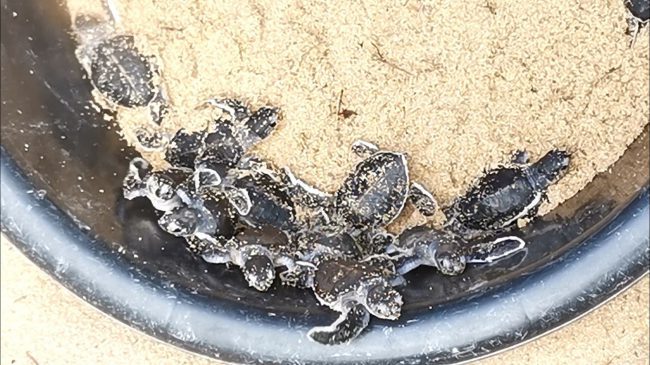 นายจำปี ศรีคำ ผู้ดูแลเต่า กล่าวว่า ตั้งแต่ช่วงประมาณ 03.00-04.00 ที่ผ่านมาเป็นช่วงจังหวะน้ำขึ้นเต็มที่ เมื่อถึงเวลาที่เต่าฟักออกจากไข่เป็นเวลาประมาณ 06.00 น. เต่าตนุแต่ละตัวต่างทยอยเดินโผล่ออกจากหลุมทรายที่แม่ได้มาวางไข่ไว้ โดยวันนี้มีลูกเต่าทยอยเดินออกมาเดินลงสู่ทะเล นับได้ทั้งหมด จำนวน 50 ตัว จาก 88 ฟอง ทำให้ตื่นตาตื่นใจกับเจ้าหน้าที่และชาวบ้าน ที่ไปรอเฝ้าดู เพื่อ พร้อมทั้งขุดทรายทำร่องให้ลูกเต่าเดินลงสู่ทะเล โดยมีลูกเต่าที่ฝักแล้วตายประมาณ 1 ตัว ตายโคม 26 ฟอง และที่ยังไม่ฟักอีก 11 ฟอง จึงกลบไว้ให้ฟักต่อไป