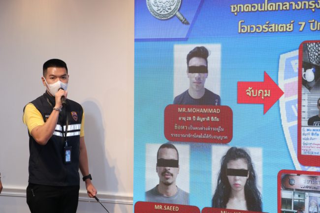 ต่อมา เจ้าหน้าที่ตำรวจชุดจับกุมเดียวกันนี้จึงได้ไปดักเฝ้ารอกลุ่มเป้าหมายตามคำบอกเล่าของ Mr.MUHAMMAD ที่คอนโดมิเนียมอีกแห่งหนึ่งในละแวกเดียวกัน จนพบชายหญิงชาวต่างชาติ 2 ราย มีตำหนิรูปพรรณตรงตามคำให้การของ Mr.MUHAMMAD กำลังขับขี่จักรยานยนต์ซ้อนท้ายกันออกจากคอนโดมิเนียมที่เจ้าหน้าที่ตำรวจชุดจับกุมได้นำกำลังไปวางรอไว้ เจ้าหน้าที่ตำรวจจึงแสดงตัวขอตรวจสอบหนังสือเดินทาง ผลการตรวจสอบพบว่าชาวต่างชาติทั้งสองคือ Mr.SAEED อายุ 32 ปี สัญชาติซีเรีย และ Miss HOUDA อายุ 23 ปี สัญชาติโมร็อคโค โดย Mr.SAEED พบอยู่ในราชอาณาจักรโดยการอนุญาตสิ้นสุด (2,612 วัน) และมีประวัติก่อคดีชิงทรัพย์อยู่ในระหว่างปล่อยตัวชั่วคราวภายใต้คำสั่งศาลอาญากรุงเทพใต้ ส่วน Miss HOUDA พบอยู่ในราชอาณาจักรโดยการอนุญาตสิ้นสุดเช่นกัน (750 วัน) ในเบื้องต้นทั้งสองอ้างว่าไม่มีส่วนเกี่ยวข้องกับ Mr.MUHAMMAD เจ้าหน้าที่ตำรวจชุดจับกุมจึงแจ้งข้อกล่าวหาให้ทั้งผู้ต้องหาทั้งสองทราบว่า “เป็นบุคคล