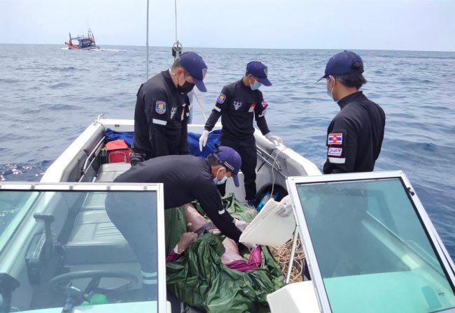 โดยเรือเร็วของสมาคมสว่างบุญช่วยเหลือฯ เข้าเทียบท่าเรือชลาลัย อ.คลองใหญ่ จว.ตราด และนำส่ง รพ.คลองใหญ่ ดำเนินการชันสูตร พร้อมได้สั่งการให้ ศรชล.จว.ตราด และ ศคท.จว.ตราด ประสานและอำนวยการให้ จนท.สวัสดิการและคุ้มครองแรงงาน และ จนท.จัดหางาน ประจำ ศจร.คลองใหญ่ ดำเนินการติดตามการช่วยเหลือจากภาครัฐ และจากเจ้าของเรือต่อไป