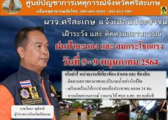 นายบุญประสงศ์ นวลสายย์ ปภ.จังหวัดศรีสะเกษ กล่าวว่า เมื่อวันที่ 5 พฤษภาคม 2564 เวลา 17.00 – 21.00 น. ได้เกิดวาตภัย ใน พท. รวม 3 อำเภอ 9 อปท. 18 หมู่บ้าน ทำให้บ้านเรือนได้รับความเสียหายสำรวจเบื้องต้น ดังนี้ ประกอบด้วย อำเภอกันทรลักษ์ ในพินที่เขตเทศบาลเมืองกันทรลักษ์ ตำบลหนองหญ้าลาด ตำบลน้ำอ้อม และตำบลตระกาจ ทำให้บ้านเรือนได้รับความเสียหาย จำนวน 37 หลัง พืชผลการเกษตรเป็นจำนวนมาก อำเภอเมืองศรีสะเกษ ในเขตเทศบาลเมืองศรีสะเกษ และตำบลหนองไผ่ ทำให้บ้านเรือนได้รับความเสียหาย จำนวน 10 หลัง และอำเภอโพธิ์ศรีสุวรรณ ในพื้นที่ตำบลโดด ตำบลเสียว และตำบลหนองม้า ทำให้บ้านเรือนได้รับความเสียหาย 12 หลัง และหลังอาอาคารของ โรงพยาบาลโพธิ์ศรีสุวรรณ และอาคารของ โรงเรียนบ้านจาน ได้รับความเสียหายด้วย นอกจากนี้ยังมีต้นไม้หักโค่นล้มกีดขวางการจราจรหลายจุด ซึ่งส่วนราชการที่เกี่ยวข้องได้ดำเนินการในส่วนที่เกี่ยวข้องเรียบร้อย สามารถสัญจรไปมาได้ปกติแล้ว ในการนี้ อำเภอ/ อปท. ได้ดำเนินการให้ความช่วยเหลือเบื้องต้น และจะเร่งสำรวจความเสียหาย และให้ความช่วยเหลือตามระเบียบ หลักเกณฑ์ที่เกี่ยวข้องต่อไป