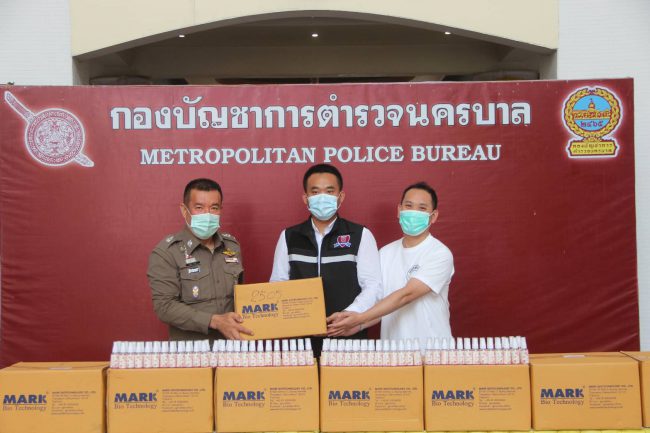 วันที่ 5 พ.ค.64 เวลา 11.30 น. พล.ต.ต.ปิยะ ต๊ะวิชัย รอง ผบช.น./โฆษก บช.น. รับมอบแอลกอฮอล์เหลว จำนวน 2400 ขวด จาก ดร.พิชาญ พรหมเมฆ ประธาน ที่ปรึกษา กต.ตร. สน.บางบอน ณ ลานเอนกประสงค์ ชั้น1 อาคาร บช.น.