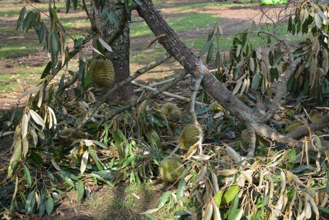 ศรีสะเกษ !! ชาวสวนทุเรียนภูเขาไฟเศร้าพายุฤดูร้อนถล่มสวนทุเรียนลูกทุเรียนใกล้สุกหล่นจากต้นจำนวนมาก