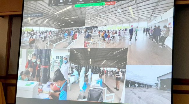 วันที่ 7 พ.ค.64 ที่ห้องประชุมราชภักดิ์ ชั้น 5 สำนักงานสาธารณสุขจังหวัดประจวบคีรีขันธ์ พรหมพิริยะ กิจนุสนธิ์ และ นางสาวชไมพร อำไพจิตร รองผู้ว่าราชการจังหวัดฯ ร่วมเป็นประธานการประชุมคณะกรรมการโรคติดต่อจังหวัดฯ โดยมีการถ่ายทอดการประชุมผ่านระบบโปรแกรมซูมไปยังส่วนราชการที่เกี่ยวข้องในจังหวัด มีวาระสำคัญคือการติดตามสถานการณ์การแพร่ระบาดของโรคโควิด 19 ที่โรงงานผลิตสับปะรดควอลิตี้ ไพน์แอปเปิ้ล ซึ่งตั้งอยู่ริมถนนบายพาสชะอำ-ปราณบุรี หมู่ที่ 3 ต.หินเหล็กไฟ อ.หัวหิน โดยตรวจพบการระบาดเป็นกลุ่มก้อนในกลุ่มลูกจ้างชาวเมียนมา ล่าสุด จากการเก็บสารตัวอย่างสารคัดหลั่งกลุ่มแรงงานที่เป็นผู้สัมผัสเสี่ยงสูงจำนวน 257 คน ส่งตรวจทางห้องปฏิบัติการ พบผู้ติดเชื้อแล้ว 112 คน