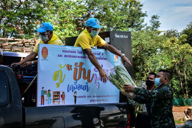 ออกตระเวนแจกจ่ายให้กับประชาชนที่ได้รับผลกระทบจากการแพร่ระบาดของไวรัสโควิด-19