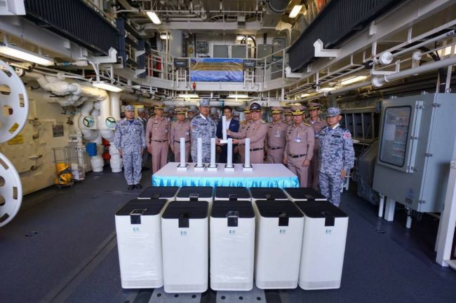 เรือหลวงตากสิน เรือหลวงกระบุรี เรือหลวงบางปะกง และอยู่ระหว่างการติดตั้งอีก 2 ลำ คือ ที่ เรือหลวงอ่างทอง และเรือหลวงสิมิลัน ซึ่งเมื่อเร็วๆ นี้ กองทัพเรือ ได้จัดให้มีการไปฝึกภาคทะเลของนักเรียนนายเรือ โดยหมู่เรือฝึก คือ เรือหลวงนเรศวร เรือหลวงบางปะกง และเรือหลวงมกุฎราชกุมาร ที่ได้ทำการติดตั้งเครื่องฆ่าเชื้อดังกล่าวแล้ว พบว่า ไม่มีกำลังพล ประจำเรือรวมถึงนักเรียนนายเรือที่เข้าร่วมฝึกป่วยเป็นโรคเกี่ยวกับระบบทางเดินหายใจแต่อย่างใด นอกจากนั้นยังสามารถขจัดกลิ่นไม่พึงประสงค์ อาทิ ควัน /น้ำมัน ให้ลดลงได้อีกด้วย