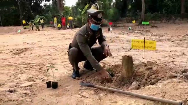 เมื่อวันที่ 8 พฤษภาคม 2564 ที่โรงเรียนบ้านซำโพธิ์ ตำบลซำ อำเภอเมืองศรีสะเกษ พ.ต.อ.เทพพิทักษ์ แสงกล้า ผกก.สภ.เมืองศรีสะเกษ ได้เป็นประธานเปิดศูนย์การเรียนรู้ศาสตร์พระราชาสู่การพัฒนาที่ยั่งยืน คิด ทำ นำ เปลี่ยน โรงเรียนบ้านซำโพธิ์ โดยมีนางสาววราลักษณ์ จำปาขีด นายกองค์การบริหารส่วนตำบลซำ นายธนวัฒน์ ประจักษ์จิต กำนันตำบลซำ นายทิวา รุ้งแก้ว ประธานชมรมคนรักในหลวง นางสาวสุภาวดี ภาสตโรจน์ ผู้อำนวยการโรงเรียนบ้านซำโพธิ์ พ.ต.ท.พิเนตร ดาวเรือง รอง ผกก.ป.สภ.เมืองศรีสะเกษ ร.ต.อ.จงจิตร เทพวงษา รอง สว.จร. นำข้าราชการตำรวจ ผู้นำชุมชนท่านผู้บริหาร ทีมงานรพ.สต.และพี่น้องประชาชนชาวบ้านซำโพธิ์ และชุดปฏิบัติการชุมชนยั่งยืนฯ สภ.เมืองศรีสะเกษ ร่วมกิจกรรมจิตอาสาปลูกป่าอนุรักษ์ดินตามวีถีพอเพียง ตามแนวทางโครงการดำเนินงานชุมชนยั่งยืน เพื่อแก้ไขปัญหายาเสพติดแบบครบวงจร ตามยุทธศาสตร์ชาติ และโครงการโรงเรียนศีล 5 ตามรอยพ่ออย่างพอเพียง ปลูกต้นไม้ ณ โคกหนองนาซำโพธิ์ โรงเรียนบ้านซำโพธิ์ต.ซำ อ.เมือง จ.ศรีสะเกษ ภายใต้มาตรการการป้องกันโควิด-19 อย่างเคร่งครัด ทั้งนี้เพื่อให้ศูนย์การเรียนรู้ศาสตร์พระราชาสู่การพัฒนาที่ยั่งยืนโรงเรียนบ้านซำโพธิ์ เพื่อเป็นแหล่งเรียนรู้ของชุมชนต่อไป