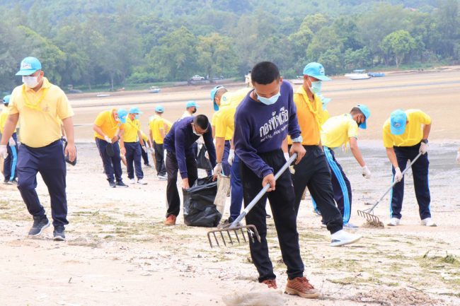 ทรภ.1 จัดกำลังพลจิตอาสากองทัพเรือ เปิดปฏิบัติการปูพรมทำความสะอาดหาดดงตาล