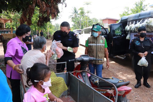 ชุดควบคุมกรมทหารพราน 12ไม่ทิ้งประชาชน นำข้าวสารอาหารแห้งและน้ำดื่มลงพื้นที่แจกจ่ายให้ประชาชนที่อาศัยอยู่ตามแนวชายแดนไทยกัมพูชาทางด้านจังหวัดสระแก้ว เพื่อช่วยเหลือแบ่งเบาภาระค่าใช้จ่ายในช่วงลำบากจากวิกฤตโรคระบาด ภายใต้สโลแกน“รวมน้ำใจ ร่วมแบ่งปัน ฝ่าวิกฤตโควิด-19ไปด้วยกัน” ช่วงเช้าวันนี้ พันเอกเอกพงษ์ กฤตยาเกียรติชุติ ผู้บังคับชุดควบคุมกรมทหารพรานที 12 อรัญประเทศ สระแก้ว พร้อมเจ้าหน้าที่ทหารพรานในสังกัดฯและเจ้าหน้าที่ทหารกองกำลังบูรพา นำรถปันสุข หรือรถขายกับข้าวพุ่มพวง ที่ชาวบ้านทั่วไปรู้จักกันดี บรรทุกข้าวสาร, อาหารแห้ง, สบู่,ยาสีฟัน, น้ำดื่ม, ผักสด และอีกต่างๆจำนวนกว่า 200 กิโลกรัม เข้ามาประชาสัมพันธ์แจกจ่ายให้กับประชาชนในบ้านอ่างศิลา หมู่ที่ 5 และบ้านศิลารัตน์พัฒนา หมู่ที่ 6 ตำบลโนนหมากมุ่น อำเภอโคกสูง จังหวัดสระแก้ว ซึ่งเป็นหมู่บ้านที่อยู่ติดกับแนวชายแดนประเทศกัมพูชา เสียงประชาสัมพันธ์ของรถปันสุขดังกล่าว สร้างความตื่นเต้นเป็นที่น่าสนใจกับชาวบ้านเป็นอย่างมาก จึงได้พากันออกจากบ้านมารับสิ่งของต่างๆจากรถปันสุขอย่างมีความสุขโดยไม่ต้องจ่ายเงินแม้แต่บาทเดียว นอกจากนั้นแล้ว พันเอกเอกพงษ์ฯยังได้นำเอาข้าวสารอาหารแห้งและสิ่งของอื่นๆเดินทางเข้าไปมอบให้ผู้สูงอายุ ผู้ป่วยติดเตียง ที่ไม่สามารถเดินทางออกจากบ้านมารับที่รถปันสุขได้