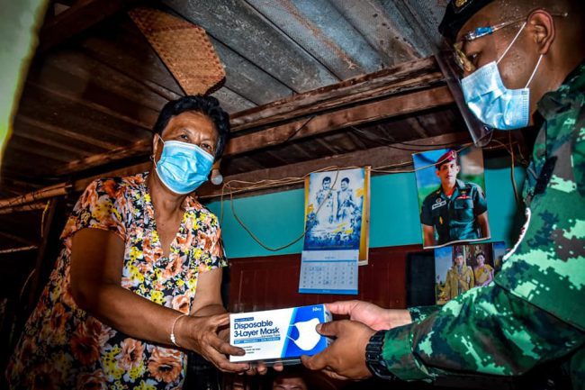 ที่ค่ายพระยอดเมืองขวาง ตำบลกุรุคุ อำเภอเมือง จังหวัดนครพนม ผู้สื่อข่าวรายงานว่า กองทัพบกเดลิเวอรี่หน้ากากอนามัยให้ประชาชนถึงบ้าน “หนึ่งกล่องต่อหนึ่งครอบครัว” ลดภาระ เสริมการป้องกันตนเอง เป็นมาตรการหนึ่งที่ได้ผลชัดเจนในการป้องกันการแพร่ระบาดของโควิดในขณะนี้คือการสวมหน้ากากอนามัย ซึ่งกลายเป็นอุปกรณ์ที่จำเป็นในการดำรงชีวิต ทั้งนี้ที่ผ่านมา กองทัพบกได้มีนโยบาย ให้หน่วยทหารรณรงค์สร้างการรับรู้ในการป้องกันตนเองพร้อมนำ เจลแอลกอฮอล์พระราชทานและหน้ากากอนามัยไปมอบให้กับประชาชนในพื้นที่ต่างๆอย่างต่อเนื่อง และจากความห่วงใยของ พลเอก ณรงค์พันธ์ จิตต์แก้วแท้ ผู้บัญชาการทหารบก ที่เห็นว่าประชาชนบางส่วนอาจได้รับหน้ากากอนามัยหรือจัดหาด้วยตนเองไม่เพียงพออีกทั้งปัจจุบันความจำเป็นในการใช้หน้ากากอนามัยประจำวันยิ่งสูงขึ้น ดังนั้นเพื่อเป็นการเสริมการป้องกันตนเองและช่วยลดภาระของประชาชน ผบ.ทบ.ได้มอบให้หน่วยทหาร นำหน้ากากอนามัย “หนึ่งกล่องต่อหนึ่งครอบครัว”กระจายออกมอบให้ประชาชนตามที่พักอาศัย ร้านค้า แหล่งชุมชน แบบ“Delivery mask “ให้ถึงมือประชาชนอย่างทั่วถึงมากที่สุด โดยจะดำเนินการตลอดเดือนพฤษภาคมนี้ (ขอบพระคุณ Army Spoke Team)