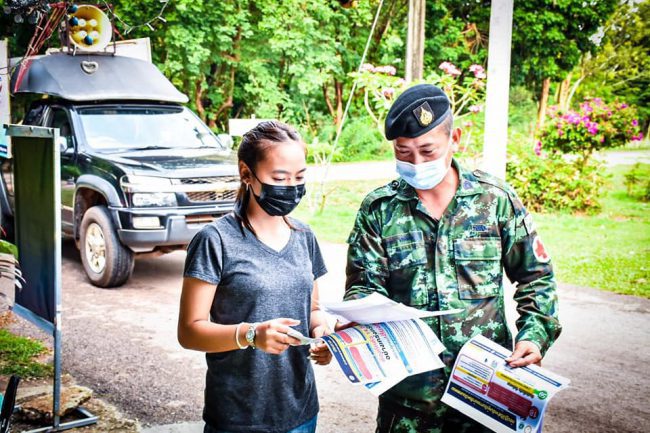 โดยได้แจกเอกสารประชาสัมพันธ์ และให้คำแนะนำการป้องกันโรคโควิด -19 พร้อมทั้งเน้นย้ำให้กำลังพล และครอบครัวปฏิบัติตามนโยบายรัฐบาลอย่างเคร่งครัด มิให้มีการแพร่กระของเชื้อโรค เพื่อให้กำลังพล และครอบครัวได้ตระหนักรู้เท่าทันต่อสถานการณ์ และการป้องกันตนเอง ป้องกันบุคคลรอบข้างหรือบุคคลใกล้ชิด ให้มีความปลอดภัย ณ ห้องแถวบ้านพักค่ายพระยอดเมืองขวาง ตำบลกุรุคุ อำเภอเมือง จังหวัดนครพนม