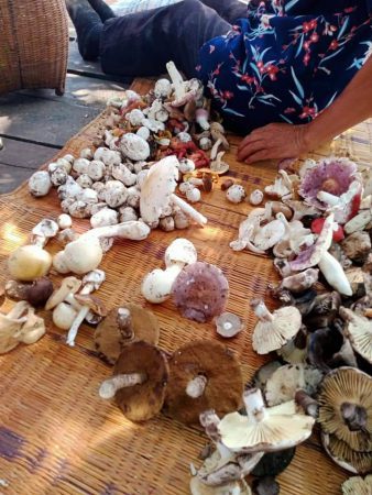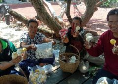 นาง นาง คำแสนพันธ์ อายุ 54 ปี ชาวบ้านบ้านนายางกลัก หมู่ 1 กล่าวว่า ช่วงนี้ฝนตกเกือบตกวันทำให้เห็ดป่าออกมากมายในป่าเทือกเขาพังเหย ที่บ้านไร่ ต.บ้านไร่ อ.เทพสถิต จ.ชัยภูมิ จะมีเห็ดระโงก เห็ดผึ้ง เห็ดเครื่อง และเห็ดอื่นๆ ออกในป่าเยอะแยะไปหมด ยิ่งมีฝนตกมากเท่าไหร่ เห็ดก็จะออกมากชาวบ้านต้องออกเก็บเห็ดตั้งแต่เที่ยงคืนโดยใช้ไฟฉายส่องหาเห็ดจนถึงรุ่งเช้า เดินทางออกไปเก็บเห็ดได้หลายชนิดใส่ตะกร้าเต็มกระบุงประมาณ 5-10 ก.ก.ต่อคน แล้วแต่ความขยันของแต่ละคน จากนั้นก็มาตั้งขายเพิงริมถนน ใส่ถุงๆละ 50-80 บาท ราคาขึ้นอยู่กับชนิดของเห็ด และปริมาณการออกเห็ด ถ้าออกมากราคาก็ลดลง ถ้าออกน้อยราคาก็จะสูง ถ้าเป็นเห็ดระโงกจะขายกิโลละ 200-220 บาท เห็ดผึ้ง 120/กิโล และเห็ดโคน ราคาแพงนิดหนึ่ง เนื่องจากมีน้อย เอามาแกงแบบอีสาน และเห็ดโคนก็มีน้อยราคาก็จะสูงเช่นกัน กิโลละ 180-200 สร้างรายได้ ในช่วงที่อยู่บ้านจากปัญหาโควิด 19 ไม่ออกไปทำงานที่อื่นไม่ได้จึงออกหาเห็ดป่ามาขายเพื่อนำเงินมาใช้จ่ายในครอบครัว ในยุคเศรษฐกิจแบบนี้