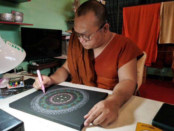 ทึ่งพบหลวงพี่ วัดขุมข้าว เขียนผ้ายันต์ด้วยมือ หนุนดวง เสริมดวง เสริมลาภ เสริมบารมี ตามกำลังวันเกิดของผู้บูชาแต่ละผืนจะมีเอกลักษณ์ต่างกันสวยที่สุดแห่งแรกในจังหวัดนครนายก ให้ญาติโยมไว้บูชา รายได้นำมาบูรณะวัด ที่วัดขุมข้าว ตำบลหนองแสง อำเภอปากพลี จังหวัดนครนายก ผู้สื่อข่าวได้รับแจ้งทางเฟสบุ๊คว่ามีพระเขียนผ้ายันต์ด้วยมือที่มีเอกลักษณ์ไม่เหมือนใครจึงได้เดินทางเข้ากราบนมัสการ พระครูวินัยธรกมลเมธ กตปุญฺโญ (โค้วตระกูล) หลวงพี่เมธ รองเจ้าคณะตำบลโคกกรวด-นาหินลาด รองเจ้าอาวาสวัดขุมข้าว ผู้ที่เขียนผ้ายันต์ได้สวยงามที่สุดในจังหวัดนครนายก ด้วยมือ โดยใช้จินตนาการในการเขียนยันต์จะแตกต่างกันออกไป แล้วแต่ดวงของแต่ละบุคคล โดยนำวันเดือน ปีเกิด มาลงอักขระผสมผสาน เริ่มจากการเขียนยันต์ นะชาลีติ เป็นครั้งแรกเป็นยันต์ที่ไว้ติดไว้ที่รถยนต์ไว้แจกญาติโยมที่มาทำบุญทอดกฐินผ้าป่าสามัคคีในวัดขุมข้าว ต่อมาได้ฝึกฝนและเรียนรู้จากครูบาอาจารย์ และเขียนยันต์ได้ดีขึ้นเรื่อยๆตั้งแต่นั้นมาก็ได้มาเห็นภาพ มันดาลา ของอินเดีย ซึ่งมีความ ซึ่งมีความหมายว่า ที่ประทับของพระพุทธเจ้าและพระโพธิสัตว์ต่างๆในขณะที่รู้แจ้ง ภาพเหล่านี้จะปรากฏในมโนทัศน์ของวัชราจารย์ (ครูบาอาจารย์ในพระพุทธศาสนา)โดยจะเขียนยันต์ที่มีความกว้าง 30 ยาว 30 เซนติเมตร ในเวลาที่ว่างจริงๆ ก่อนเขียนก็จะไหว้ครูบาอาจารย์ซึ่งแต่ละภาพเขียนด้วยมือทุกภาพจะใช้เวลาในการเขียนประมาณ 3-4 วันและมีญาติโยมที่ทราบข่าวทางเฟสบุ๊คก็จะทักมาขอให้เขียนให้ โยมบางท่านมาพบเห็นยันต์ที่หลวงพี่เขียนไว้ได้เกิดความชอบอยากได้ จึงได้นำวันเดือนปีเกิดมาให้ไว้เขียนยันต์เป็นของตัวเอง เพื่อนำไปไว้บูชาเป็นการหนุนดวง เสริมดวง เสริมลาภ คุณพระรักษา เทวดาคุ้มครอง เป็นสิริมงคล และได้สลักวันเดือนปีเกิดไว้ที่ด้านหลังผ้ายันต์ และได้มีญาติโยมที่สนใจได้บอกกันต่อๆไป ส่วนในการเขียนผ้ายันต์นี้ได้นำปัจจัยไปบูรณะวัดขุมข้าวต่อไป
