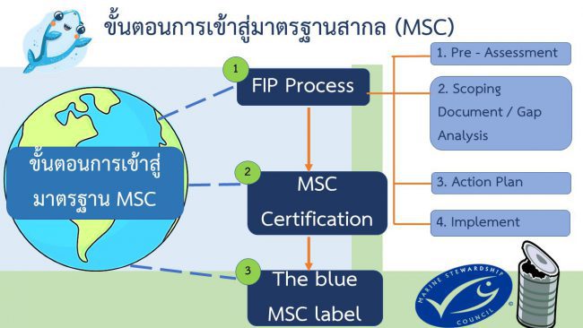 สวก. ในฐานะหน่วยงานบริหารจัดการงานวิจัยทางด้านการเกษตรของประเทศ ภายใต้แผนงานวิจัยสัตว์เศรษฐกิจเพื่อสร้างขีดความสามารถการแข่งขัน ได้เล็งเห็นความสำคัญถึงปัญหาดังกล่าว จึงให้การสนับสนุนทีมวิจัย นำโดย กรมประมง รวมทั้งมหาวิทยาลัยและภาคเอกชนที่เกี่ยวข้อง ศึกษาและหาแนวทางการแก้ปัญหาภายใต้โครงการ การศึกษา พัฒนา และปรับปรุงระบบการประมงทะเล เพื่อเพิ่มความสามารถแข่งขันของอุตสาหกรรมประมงที่ยั่งยืน ภายใต้กรอบการรับรองมาตรฐานสากล โดยมีแผนการดำเนินงานวิจัยภายในระยะเวลา 3 ปี เพื่อเป็นการทบทวน รวบรวม จัดเก็บข้อมูล การทำการประมง ชีววิทยาประมง นิเวศวิทยาการทำการประมง สังคมเศรษฐกิจ รวมถึงการมีส่วนร่วมของผู้มีส่วนได้ส่วนเสียในการทำการประมง เพื่อนำมาวิเคราะห์ สังเคราะห์และใช้ประโยชน์ในการปรับปรุงมาตรฐานการทำการประมงอย่างยั่งยืนของการทำประมงปูม้าในอ่าวไทยฝั่งตะวันออก ประมงอวนลากในบริเวณอ่าวไทย และประมงอวนล้อมจับในน่านน้ำไทย ประกอบด้วย อ่าวไทยฝั่งตะวันออก อ่าวไทยตอนบน อ่าวไทยตอนกลาง อ่าวไทยตอนล่าง และฝั่งทะเลอันดามัน ภายใต้กรอบการรับรองมาตรฐานสากลสำหรับอุตสาหกรรมประมงที่ยั่งยืน ให้สามารถผ่านการประเมินการทำประมงอย่างยั่งยืนจาก Marine Stewardship Council (MSC) รวมถึงนำผลการวิเคราะห์มาใช้เป็นข้อมูลวิทยาศาสตร์ ที่ดีที่สุดสำหรับการออกมาตรการการบริหารจัดการการใช้ประโยชน์ทรัพยากร