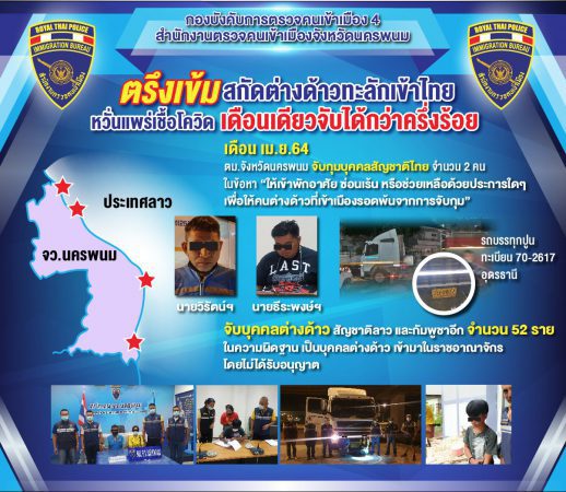 ตม.นครพนม ตรึงเข้ม สกัดต่างด้าวทะลักเข้าไทย หวั่นแพร่เชื้อโควิด เดือนเดียวจับได้กว่าครึ่งร้อย
