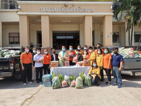 เมื่อวันที่ 14 พฤษภาคม 2564 ณ บริเวณหน้าศาลากลางจังหวัดศรีสะเกษ นายวัฒนา พุฒิชาติ ผู้ว่าราชการจังหวัดศรีสะเกษ พร้อมด้วย นายอนุรัตน์ ธรรมประจำจิต รองผู้ว่าราชการจังหวัดศรีสะเกษ , นพ.ทนง วีระแสงพงษ์ สาธารณสุขจังหวัดศรีสะเกษ เกษตรและสหกรณ์จังหวัดศรีสะเกษ ร่วมรับมอบผลิตผลทางการเกษตร จากเครือข่ายสถาบันเกษตรกรชาวสวนยางพารา และการยางแห่งประเทศไทยจังหวัดศรีสะเกษ โดยมี นายวัลลภ โศภิษฐพันธ์ ผู้อำนวยการการยางแห่งประเทศไทย จังหวัดศรีสะเกษ ผู้อำนวยการการยางแห่งประเทศไทย สาขากันทรลักษ์ ประธานเครือข่ายสถาบันเกษตรชาวสวนยางจังหวัดศรีสะเกษ ประธานสหกรณ์การเกษตรปฏิรูปที่ดินกันทรลักษ์ เข้าร่วมมอบสิ่งของดังกล่าวประกอบด้วยมะละกอ มะเขือเทศ กล้วยน้ำหว้า พริก อาหารแห้งมาม่า และปลากระป๋อง ทั้งนี้เพื่อสนับสนุนการปฏิบัติงานในสถานการณ์การแพร่ระบาดของโรคโควิด-19 โดยผลิตผลทางการเกษตรดังกล่าวจะนำไปแจกจ่ายให้แก่ประชาชนทั้ง 4 หมู่บ้านในตำบลดู่ อำเภอกันทรารมย์และตำบลหนองบัวดง อำเภอศิลาลาด ซึ่งเป็นพื้นที่ที่ยกระดับการป้องกันและระงับยับยั้งการแพร่ระบาดของโรคโควิด-19