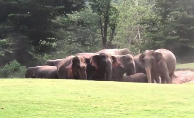โขลงช้างจำนวนมากแย่งซีนนักกอล์ฟ ชวนครอบครัวมาลงเล่นหลุมทรายกันอย่างสบายใจ