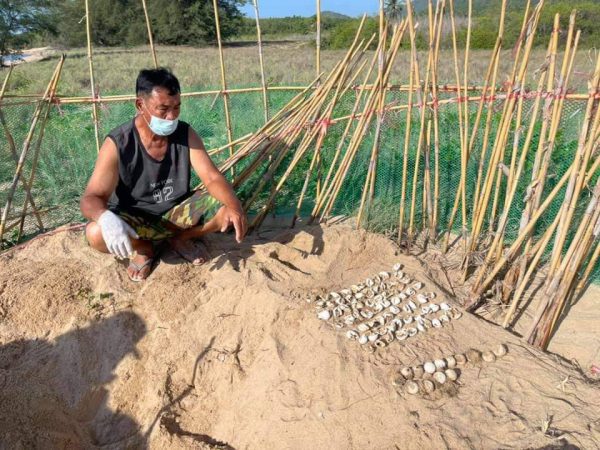 เมื่อวันที่ 14 พ.ค.64 น.อ.ไกรพิชญ์ กรวีร์ปภาวิทย์ หน.ศูนย์ควบคุมความมั่นคงท่าเรือจังหวัดประจวบคีรีขันธ์ (หน.ศคท.จว.ปข.) ได้รับแจ้งจากเจ้าหน้าที่ศูนย์วิจัยทรัพยากรทางทะเลและชายฝั่งอ่าวไทยตอนบนฝั่งตะวันตก (ศวบต.) ว่า เมื่อวันที่ 11 พ.ค.64 ได้พบลูกเต่าตนุฟักออกจากไข่ บริเวณชายหาด วัดถ้ำเขาไม้รวก ต.อ่างทอง อ.ทับสะแก จ.ประจวบคีรีขันธ์ นายสัตวแพทย์ ศวบต. จึงได้ประสานงาน และให้รายละเอียดเรื่องวิธีการปล่อยลูกเต่าคืนสู่ธรรมชาติอย่างปลอดภัย และการจัดการหลุมไข่เต่า โดยนายประชุม เสือเหลือง ผู้ใหญ่บ้าน หมู่ 9 ร่วมกับ นายเกริกเกียจ ลาภอาภารัตน์ ประธานองค์กรประมงชุมชนพื้นบ้านโคกตาหอม นายอิทธิพล ยังผ่อง และนางสาวศิรประภา เกษมสุขเจ้าของเกษมสุขรีสอร์ท รวมทั้งชาวบ้าน ต.อ่างทอง อ.ทับสะแก จ.ประจวบคีรีขันธ์ เข้าตรวจสอบหลุมไข่เต่า พบว่ามีไข่เต่าตนุทั้งหมด 84 ฟอง มีลูกเต่าตนุฟัก 69 ตัว มีลูกเต่าตนุตาย 1 ตัว ไข่ติดเชื้อรา และเน่าเสีย 14 ฟอง โดยได้ปล่อยลูกเต่าตนุกลับคืนสู่ทะเล จำนวน 69 ตัว