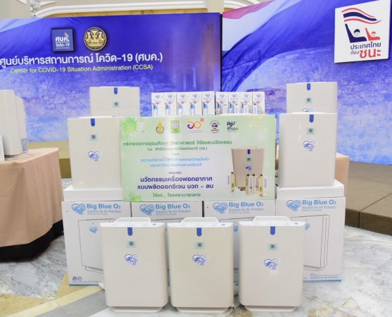 กระทรวงการอุดมศึกษา วิทยาศาสตร์ วิจัยและนวัตกรรม (อว.) ส่งมอบ “นวัตกรรมเครื่องฟอกอากาศแบบผลิตออกซิเจน บวก-ลบ” นวัตกรรมที่ได้รับทุนสนับสนุนจากสำนักงานการวิจัยแห่งชาติ (วช.) ดำเนินการ โดยสมาคมกีฬาเครื่องบินจำลองและวิทยุบังคับ และมหาวิทยาลัยสงขลานครินทร์ เพื่อร่วมรับมือการระบาดของโรคติดเชื้อไวรัสโคโรนา 2019 หรือ โควิด-19