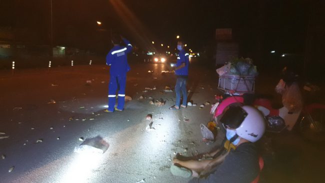 เมื่อเวลา 05.00 น. ของวันที่ 21 พ.ค.64 เกิดอุบัติเหตุรถ จยย.เฉี่ยวชนกันมีผู้ได้รับบาดเจ็บ บนถนนสุขุมวิท หลัก กม.ที่ 171-172 ขาเข้าพัทยา บริเวณหน้าร้านอู่ช่างพูล ใกล้ร้านเดช 31 หมูกระทะ บ้านเตาถ่าน ต.สัตหีบ อ.สัตหีบ จ.ชลบุรี ที่เกิดเหตุพบผู้ได้รับบาดเจ็บทราบชื่อ นางสาว สิณี แซ่โง้ว อายุ 52 ปี อาชีพแม่ค้าขี่รถ จยย.ขายของชำ อยู่บ้านเลขที่ 134/140 ม.4 ต.สัตหีบ อ.สัตหีบ จ.ชลบุรี ได้รับบาดเจ็บ ขา แขนหัก มีแผลถลอกตามร่างกาย นั่งอยู่บนถนนข้าวของประเภท ผัก ขนม ปลา กระจายเกลื่อนเต็มถนน สอบถามทราบว่า ได้ไปซื้อสิ่งของมาจากตลาดสัตหีบ เพื่อนำมาจัดเป็นชุดและขี่รถ จยย.ขายตามตรอกซอกซอยต่างๆ ขณะขี่รถ จยย.ฮอนด้า ซุปเปอร์คัพ สีขาวแดง ทะเบียน 3 กธ 3112 ชลบุรี มาตามถนน ได้มีวัยรุ่นขี่รถ จยย.ย้อนศรมาชนจนได้บบาดเจ็บก่อนขี่หลบหนีไป