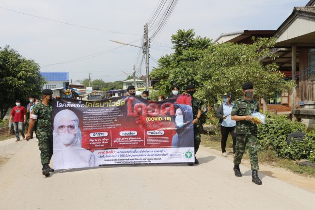ลงพื้นที่ประชาสัมพันธ์รณรงค์ฉีดวัคซีน พร้อมมอบหน้ากากาอนามัย และเวชภัณฑ์ ป้อกัน COVID-19