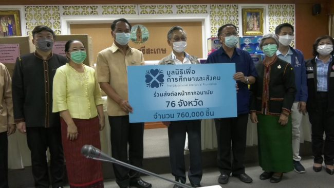 ชวน หลีกภัย มอบหน้ากากอนามัยให้กับกลุ่มเปราะบางในพื้นที่จังหวัดศรีสะเกษ