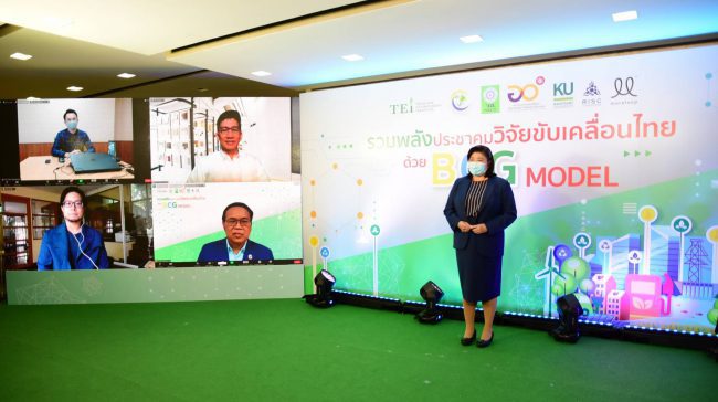 สำนักงานการวิจัยแห่งชาติ (วช.) กระทรวงการอุดมศึกษา วิทยาศาสตร์ วิจัยและนวัตกรรม (อว.) พร้อมด้วยสถาบันสิ่งแวดล้อมไทย,สำนักงานพัฒนาเศรษฐกิจจากฐานชีวภาพ (องค์การมหาชน),ศูนย์สร้างสรรค์งานออกแบบเพื่อสิ่งแวดล้อม มหาวิทยาลัยเกษตรศาสตร์ และ moreloop พร้อมด้วยประชาคมนักวิจัย รวมพลังเสนอทิศทางการขับเคลื่อนการพัฒนาประเทศไทย ด้วย BCG Model เพื่อนำไปสู่การพัฒนาที่เกิดประโยชน์ต่อประเทศอย่างยั่งยืนต่อไป