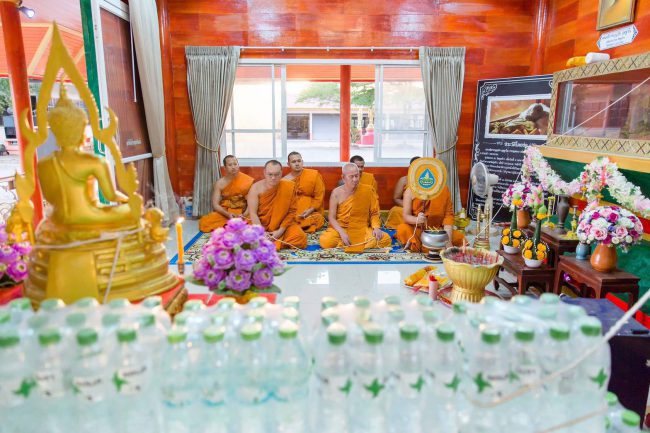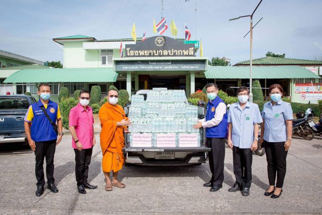 อำเภอปากพลีร่วมกับวัดขุมข้าว จัดพิธีเจริญพระพุทธมนต์อธิฐานจิต น้ำดื่มเพื่อมอบให้โรงพยาบาลปากพลี แจกประชาชนที่มาฉีดวัคซีนป้องกันโควิด-19 เพื่อเป็นขวัญกำลังใจ