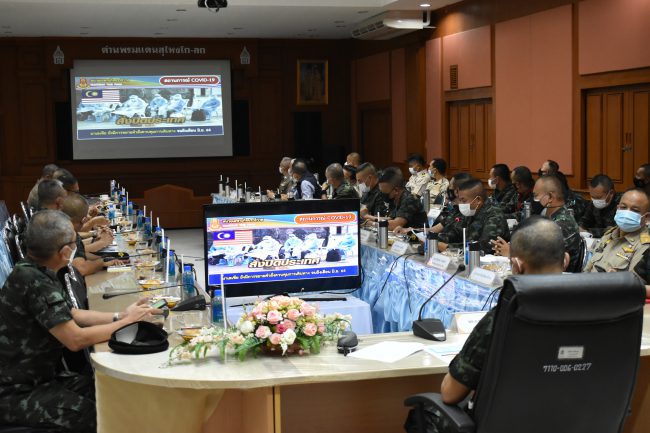 เมื่อเวลา 10.30 น. วันที่ 25 พ.ค. 64 พล.อ.พรศักดิ์ พูลสวัสดิ์ ผช.ผบ.ทบ.และคณะ เดินทางมายังด่านพรมแดน อ.สุไหงโก-ลก จ.นราธิวาส พร้อมประชุมร่วมกับนายไพโรจน์ จริตงาม รอง ผวจ.นราธิวาส นพ.วิเศษ สิรินทรโสภณ นายแพทย์สาธารณสุข จ.นราธิวาส นายวัลลภ วุฒาพาณิชย์ นายด่านศุลกากรสุไหงโก-ลก พล.ท.เกรียงไกร ศรีรักษ์ แม่ทัพภาค 4 พล.ต.ไพศาล หนูสังข์ ผบ.ฉก.นราธิวาส และเจ้าหน้าที่ที่เกี่ยวข้อง จำนวนกว่า 50 คน เพื่อมอบนโยบายเพิ่มเติมในการสกัดกั้นเชื้อไวรัสโคโรนาสายพันธุ์แอฟริกาใต้ แพร่ระบาดในพื้นที่ ต.เกาะสะท้อน อ.ตากใบ เพื่อไม่ให้ลุกลามเป็นวงกว้าง