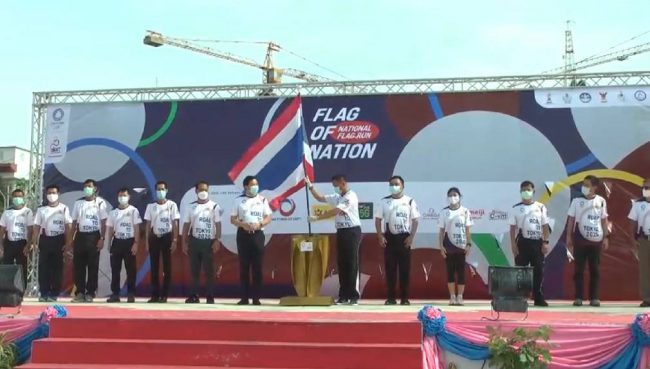 รองผู้ว่าราชการจังหวัดชลบุรี เป็นตัวแทนชาวจังหวัดชลบุรี รับมอบธงชาติไทย ในกิจกรรม “วิ่งธงชาติไทย ไปโตเกียวโอลิมปิก” เดินทางมาถึงวันที่ 59 เป็น จังหวัดที่ 33