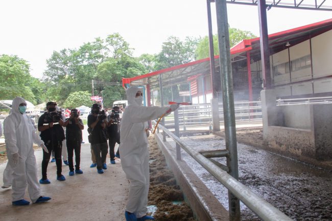 นำทีมผู้บริหารฉีดพ่นยาฆ่าแมลง ณ ฟาร์มโคนม อ.ส.ค. จ.สระบุรี