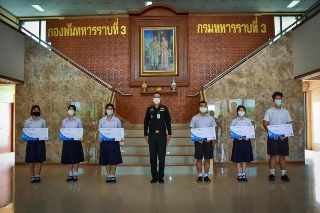 ผบ.ร.3 พัน.3 มอบทุนการศึกษาตามโครงการ “พี่ทหารสานฝัน”ในรูปแบบคอร์สเรียน “ภาษาอังกฤษครูนะ ออนไลน์ คอร์ส Entrance”