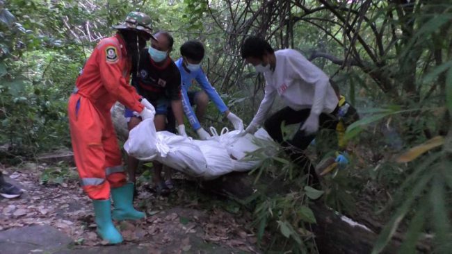 เมื่อวันที่ 30 พฤษภาคม 64 ที่ผ่านมา พ.ต.ท.สุริยา นภกรีกำแหง สารวัตรใหญ่ สภ.กกตูม ต.กกตูม อ.ดงหลวง จ.มุกดาหาร ได้รับแจ้งจากชาวบ้านว่า พบศพชายผูกคอตายอยู่บนภูเขาน้ำบ่อ หมู่ที่ 14 ต.กกตูม จึงรุดไปตรวจสอบพร้อมพิสูจน์หลักฐาน หน่วยกู้ภัยมูลนิธิ โดยเจ้าหน้าที่ต้องเดินเท้าเข้าไปประมาณ 3 กิโลเมตร ก่อนพบศพชายยื่นผูกคออยู่ใต้ต้นไม้ไม่ทราบชื่อโดย อายุประมาณ 30 ถึง 40 ปี สูงประมาณ 160 ซ.ม. ผมยาวประมาณถึงหู สวมเสื้อแขนยาวลาย แดงดำ เสื้อข้างในสีดำแขนยาว รองเท้าผ้าใบสีดำ ใส่หมวกคุมโม่งสีดำ สวมถุงมือ กางเกงยีนสีดำใกล้ศพพบกระเป๋าและหมวกกันน็อค แบบครึ่งใบ คาดเสียชีวิตมา 3 ถึง 4 วัน ตรวจสอบในกระเป๋าพบว่ามีเครื่องดำรงชีพ เช่นมะหมี่กึ่งสำเร็จรูป กางเกงขาสั้น หมวกผ้า แต่ไม่มีหลักฐานทางราชการ ซึ่งศพห่างจากถนนขึ้นไปบนภูเขาประมาณ 3 กิโลเมตร ศพมีสภาพขึ้นอืด ใช้เชือกผูกคอกับต้นไม้ สันนิษฐานว่าเสียชีวิตแล้วไม่ต่ำกว่า 3 วัน กู้ภัยต้องลำเลียงศพลงมาอย่างยากลำบาก