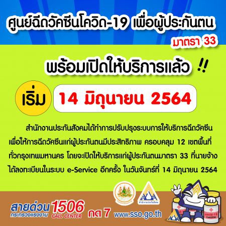 สปส. พร้อมเดินหน้าต่อ ฉีดวัคซีนผู้ประกันตน ม.33 เริ่มวันจันทร์ที่ 14 มิ.ย. นี้