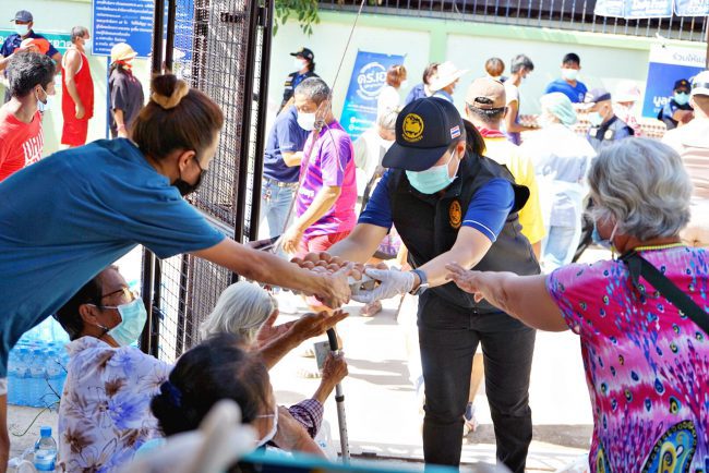 มูลนิธิ จำรัส-สุพัตรา มอบไข่ไก่ ข้าวสาร ช่วยเหลือประชาชนสัตหีบสู้ภัยโควิด